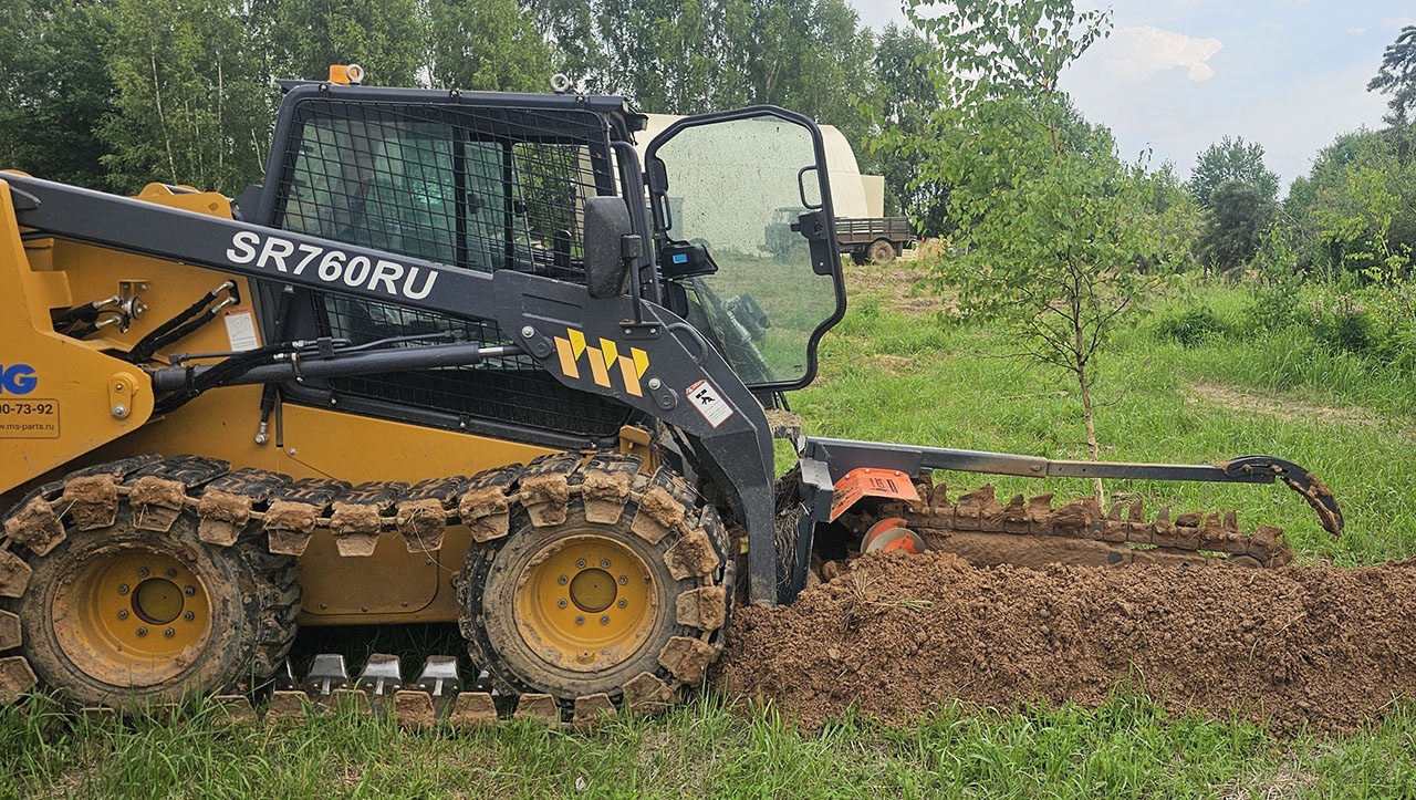 Траншеекопатель предназначен для рытья траншей. Он обеспечивает точное соблюдение глубины и ширины траншеи. Комбинированная цепь в базовой комплектации. Возможно увеличение ширины цепи до 240 мм при помощи комплекта расширителей и изменение конфигурации цепи при помощи комплектации только ковшовыми зубьями (для мягкого грунта) или только резцовыми зубьями (для мерзлой и каменистой почвы).